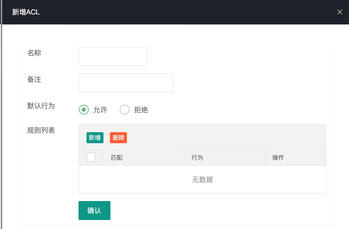 默认行为 - 可选允许或拒绝,当所有规则没有匹配时,执行默认行为。